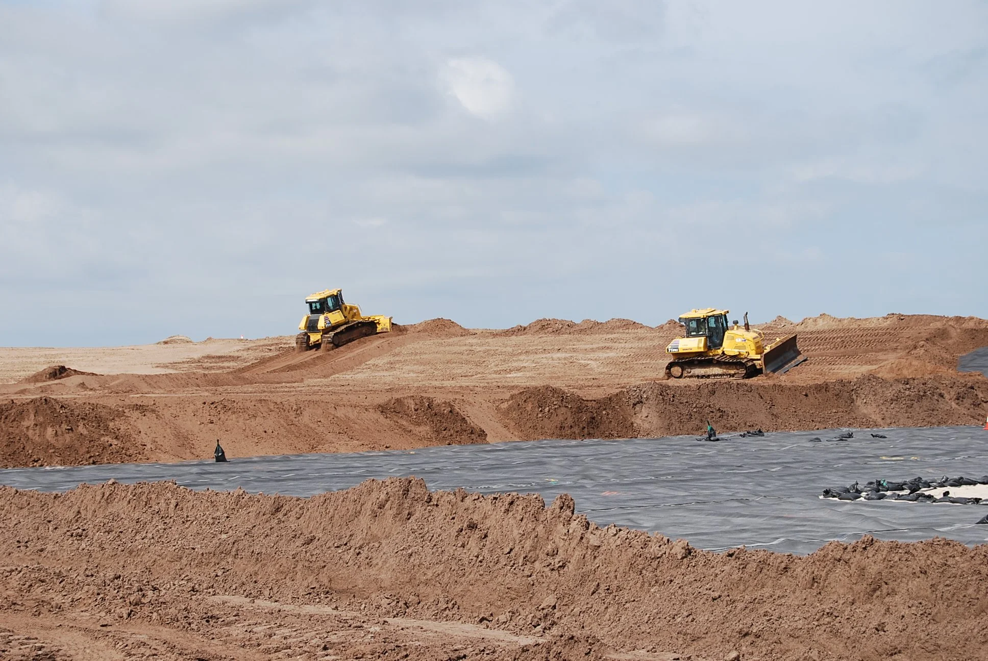 Bulldozers guided by GPS to spread topsoil to prescribed grade